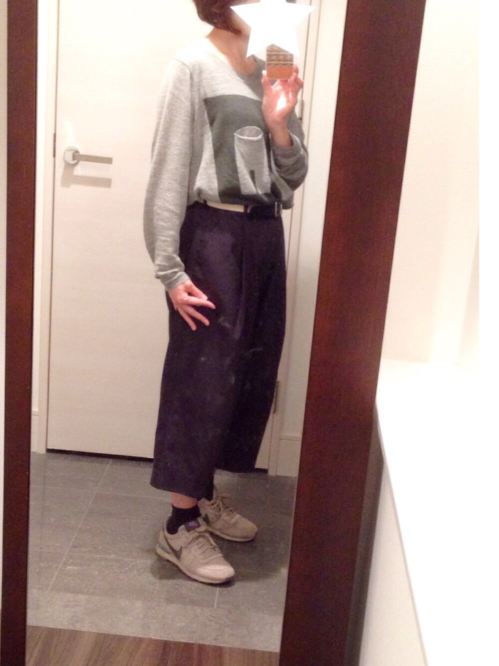休日スタイル。 これで芝生を全力疾走。ワイドパンツは走るのに向いてない。。