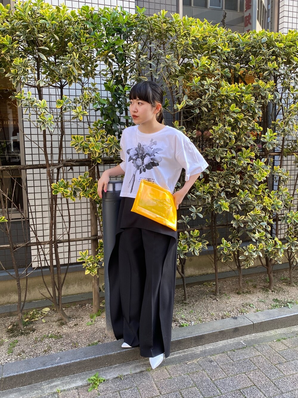 アクセントでBPのオレンジバッグを🍊🧡 プリントのTシャツも可愛い( ͡° ͜ʖ ͡°)