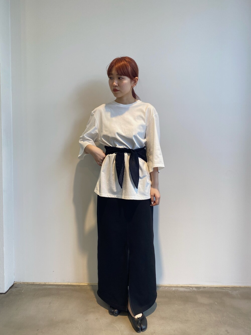 yunaのTシャツ/カットソー「AKIRANAKA "DRISHTI”ネットリボンベルトTシャツ」を使ったコーディネート