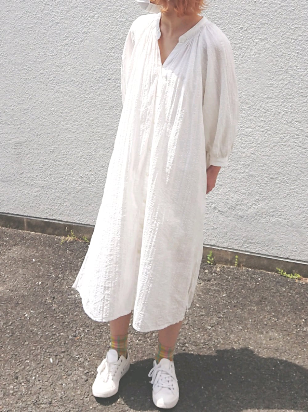 みかん🍊のワンピース「コットンドビーペザントワンピース(7分袖)」を使ったコーディネート