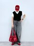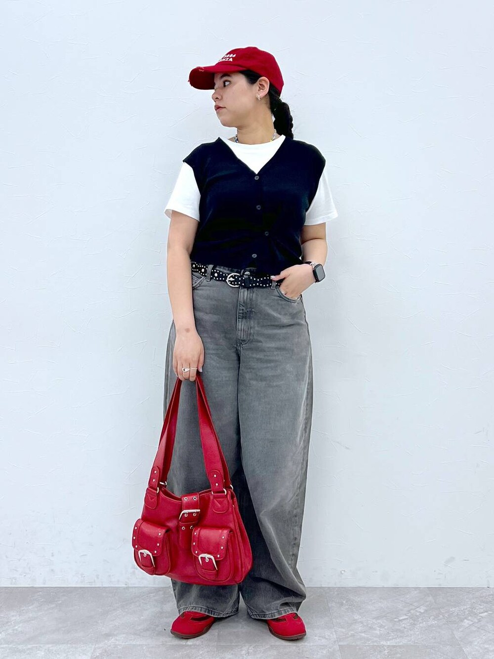 👕おすすめポイント  ̄ ̄ ̄ ̄ ̄ ̄ ̄ ̄ ̄ ̄ ̄ ̄ ̄ ̄ ̄ ̄ ̄ モノトーン✖️赤の差し色コーデ! 夏でもモノトーンを楽しみたい方は 小物でカラーアイテムを持つのがおすすめです🧡