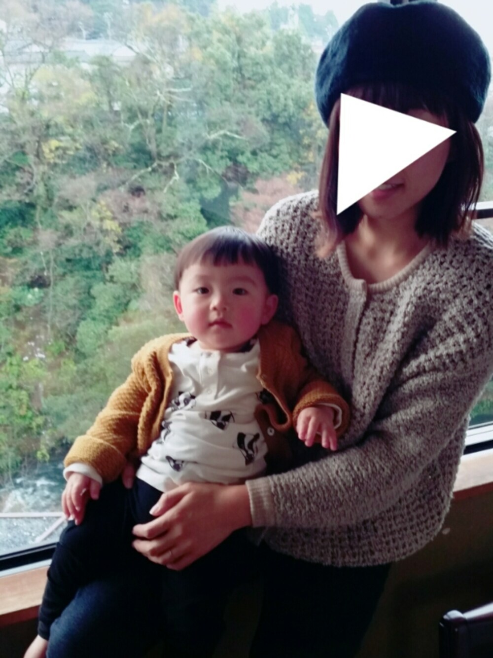 家族で温泉に。息子も大はしゃぎでほっぺが🍎みたいに。 さっそく、LE PETIT GERMAINのカーデを着せてみた🙆