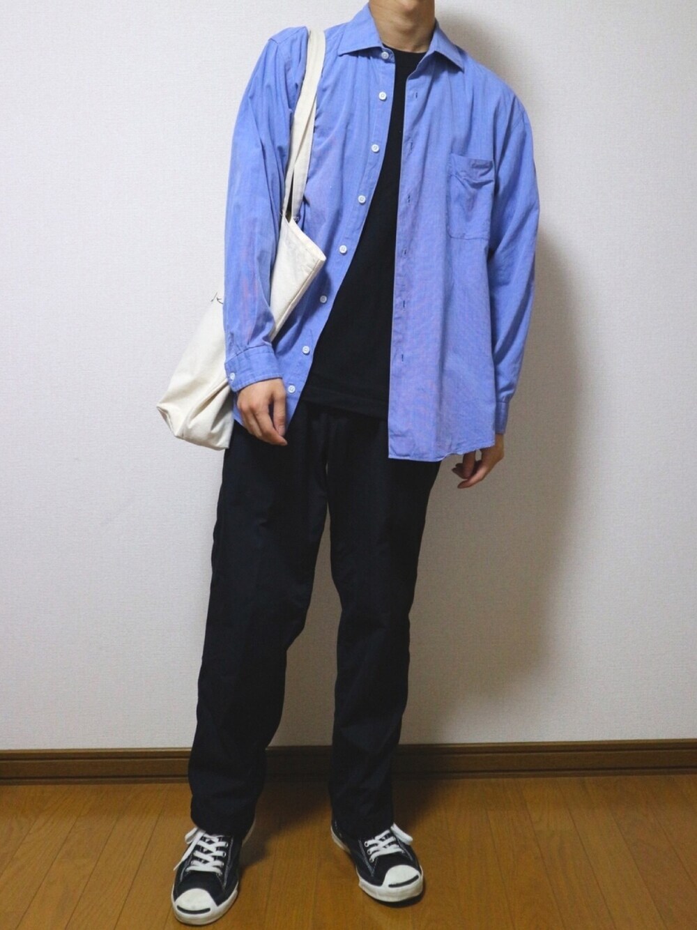 オーバーサイズにしながらもバランスが悪くならないようにしてみました!中のTシャツは白でタックインもありかも。