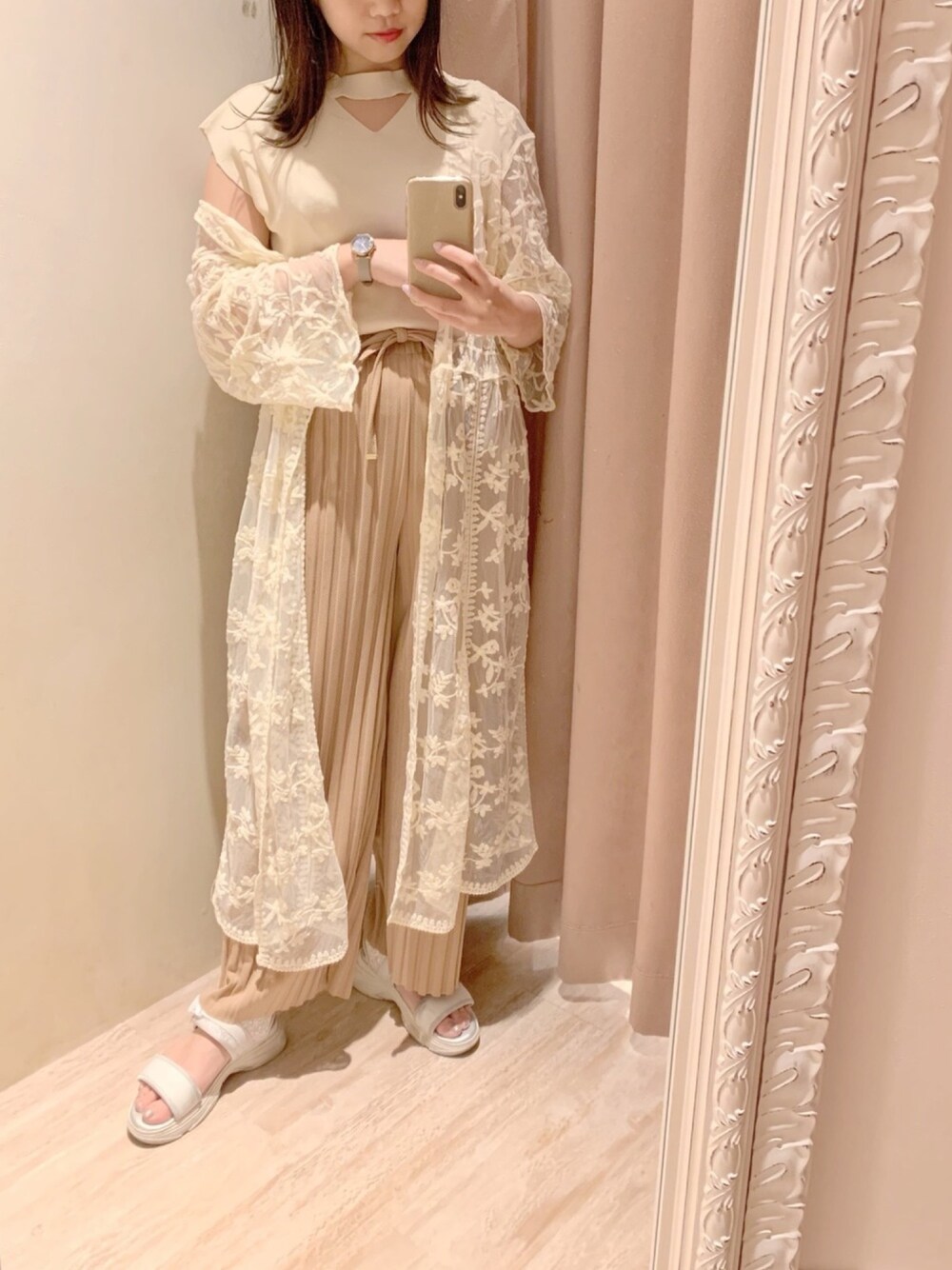 人気アイテムコーデ◎ トップスは前後2wayで使える優れもの! ノースリより少しお袖があるので 肩幅や二の腕をカバーしてくれます✨ レースガウンはさらっと羽織れて 強い日差しや冷房が直に当たるのを防げるので これからの季節におすすめ! リブパンツは太リブで縦ラインが強調され 脚がすっきり長く見えますよ☺️ しかも柔らか素材でラクチン〜〜 Instagram ☞ @ymg__6