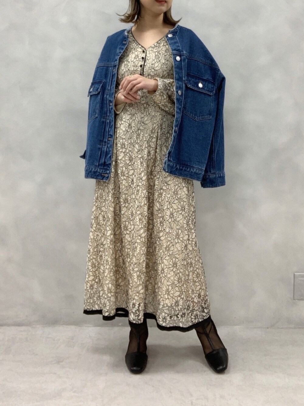 ヤマグチのワンピース「裾パイピング大人レースワンピース」を使ったコーディネート