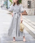 ---------------------------------- ◉one-piece (Lサイズ着用) 透け感:なし 裏地:なし 伸縮性:なし 光沢感:なし 生地感 :程よい厚みの生地感 着用感:しっかりした生地ですが、ゆったりとしているのとハリがあるので、肌にまとわりつかず夏でも涼しく着られます。リボンの有無や前後で印象が変わるので、気分によって着回しできます。157cmLサイズ着用で、ぺたんこでもギリギリ引きずらない丈感でした。 ---------------------------------- Instagram ☞ ymgc__6