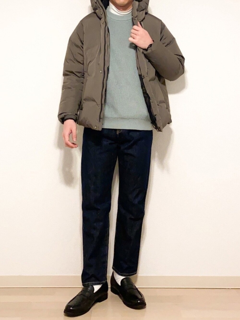 ご覧いただきありがとうございます🙇♂️ 寒色系でまとめてスタイリングしました! ダウンとパンツがダークトーンなのでトップスは明るいトーンのミントグリーンを選びました! ダークトーンのアイテムの中に1つ明るいトーンのアイテムを合わせることで印象を明るくしてくれます! 暖色系でまとめがちな秋冬だからこそ、寒色系でまとめることで新鮮さがありますね🤔