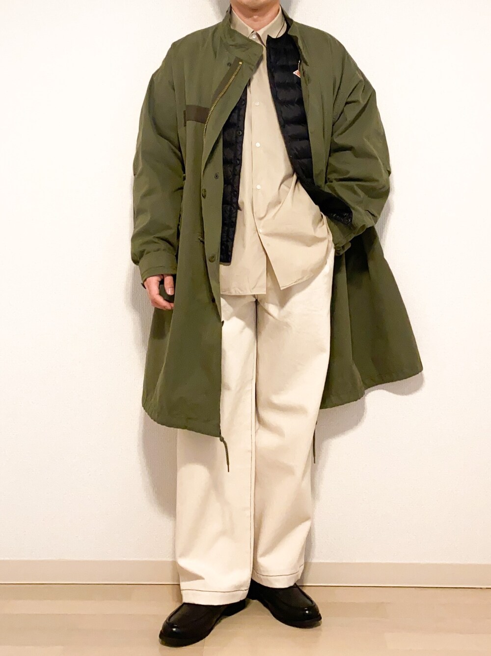 本日もご覧頂きありがとうございます🙇♂️ m-65にワイドパンツを合わせました! 白シャツではなく薄めのベージュシャツを 取り入れることでナチュラルな雰囲気に 仕上げてくれます◎ 皆さんのスタイリングの参考になると嬉しいです!