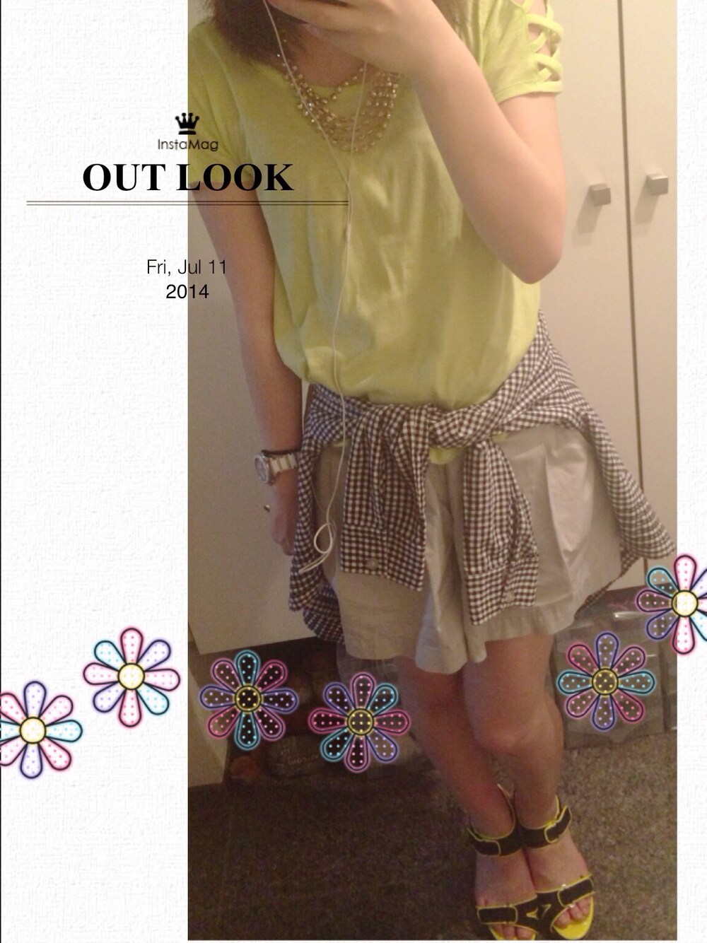 トップス:elianegigi サンダル:CHARLES&KEITH チェックシャツ:不明 キュロット:不明