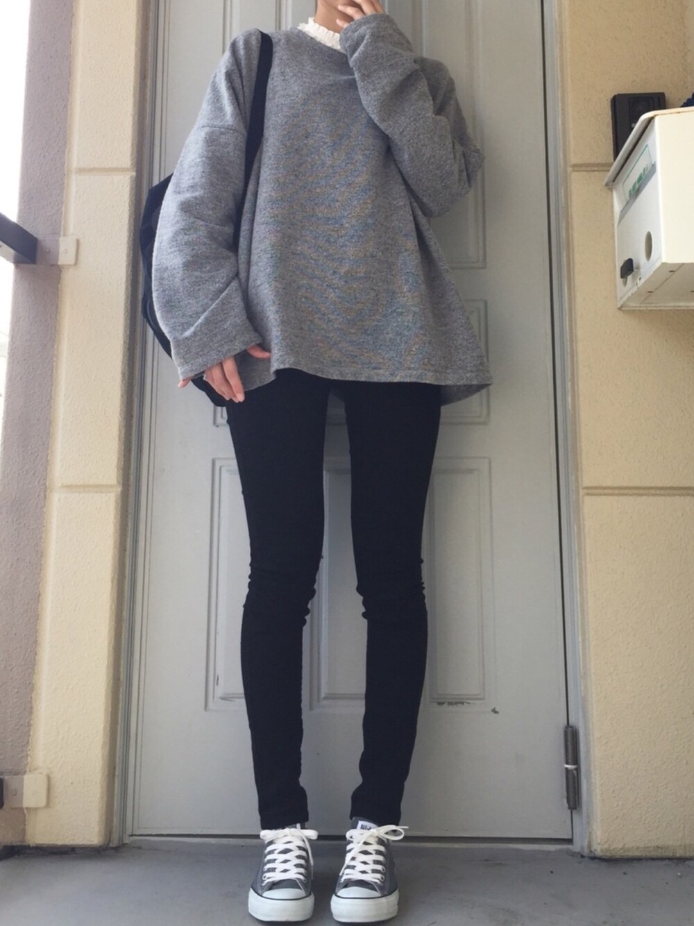 GUのフリルネックTシャツ 半袖も出て欲しい… バイトファッションです笑 この前白のスニーカー履いて行ったら 汚れて後悔したのでグレー履きます!