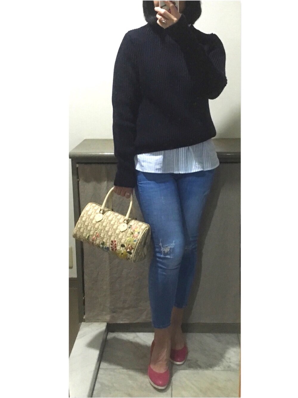 アンデルセンアンデルセンのニットにデニムを合わせたパターン 勿論この上にコートを着ます。 たまにはハイブランドのバッグを持たなければ笑