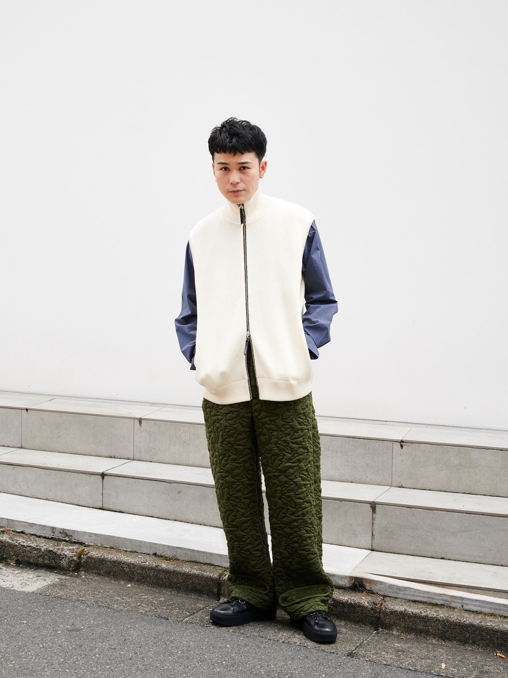 ymk__fkのニット/セーター「コットンドライバーズベスト」を使ったコーディネート