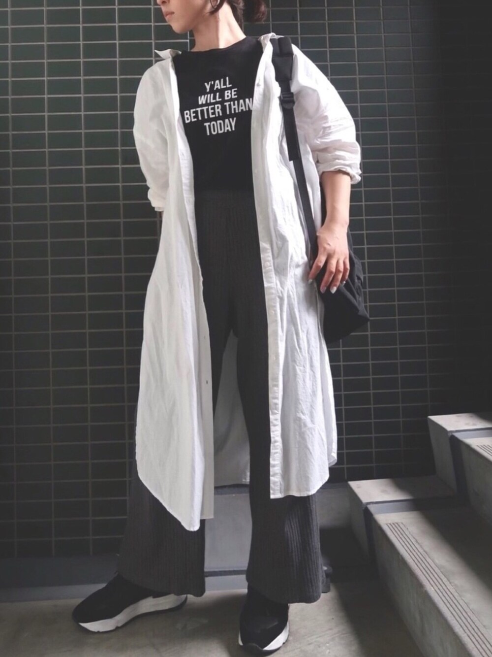 meeaのシャツワンピース「コットンシャツ2wayワンピース」を使ったコーディネート