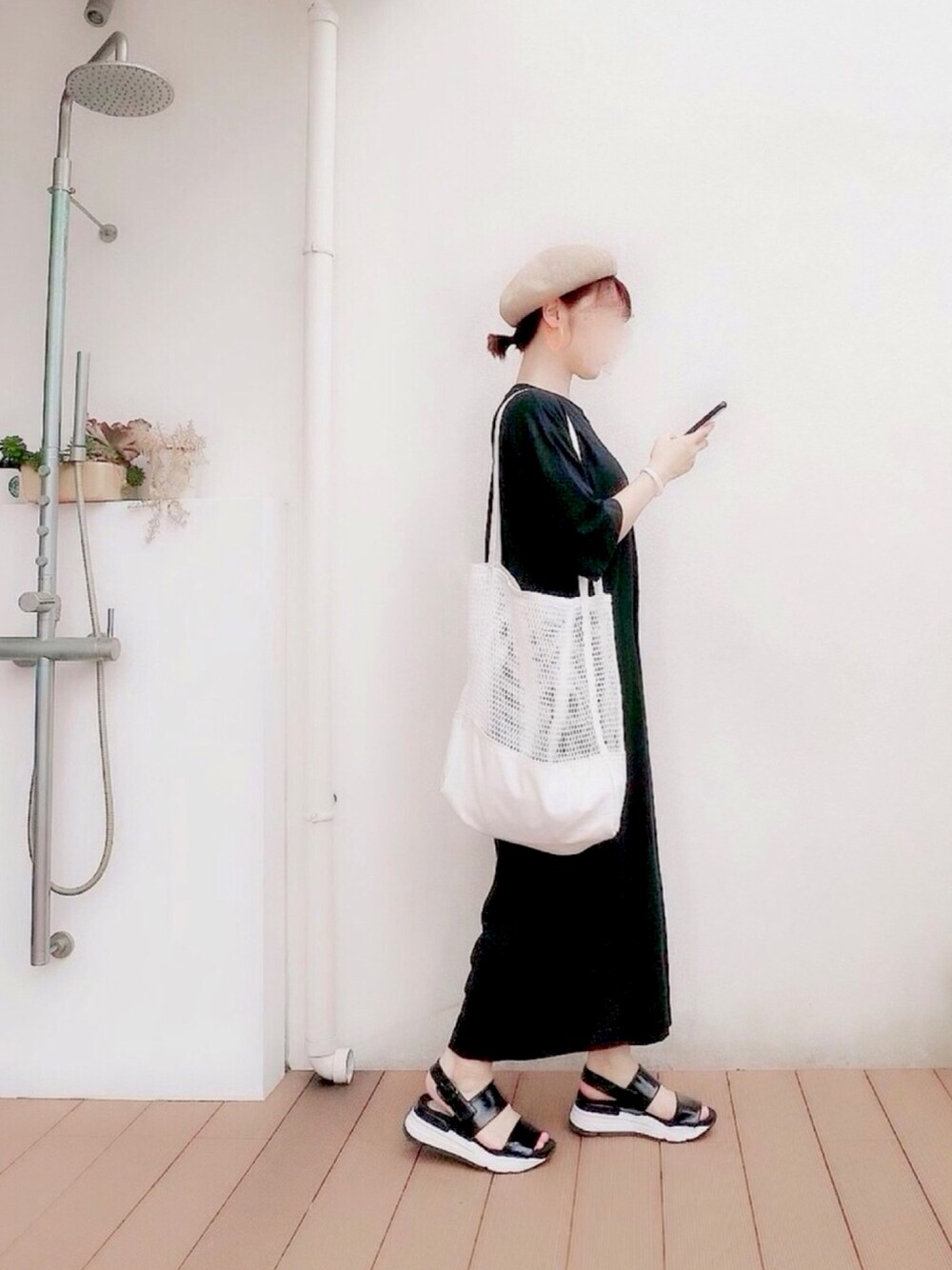 Tシャツワンピ1枚で 超ラクチンコーデ😆 普段はだいたいキャップ🧢 だけど今回はベレー帽を合わせました。 梅雨のジメジメからは ラフなコーデで乗りきります(笑)