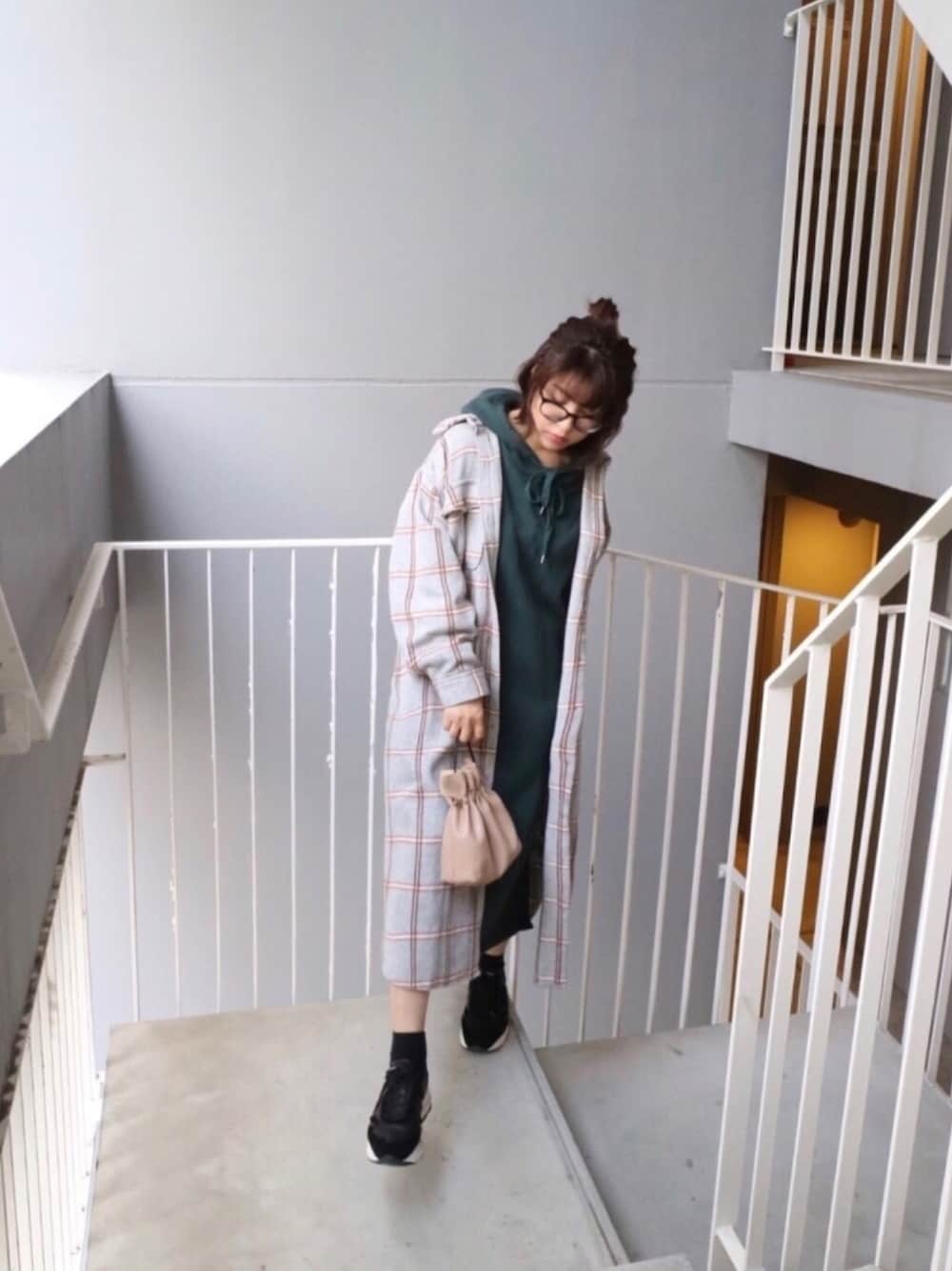 meeaのシャツワンピース「AUNT MARIE'S チェックCPOロングシャツアウター」を使ったコーディネート