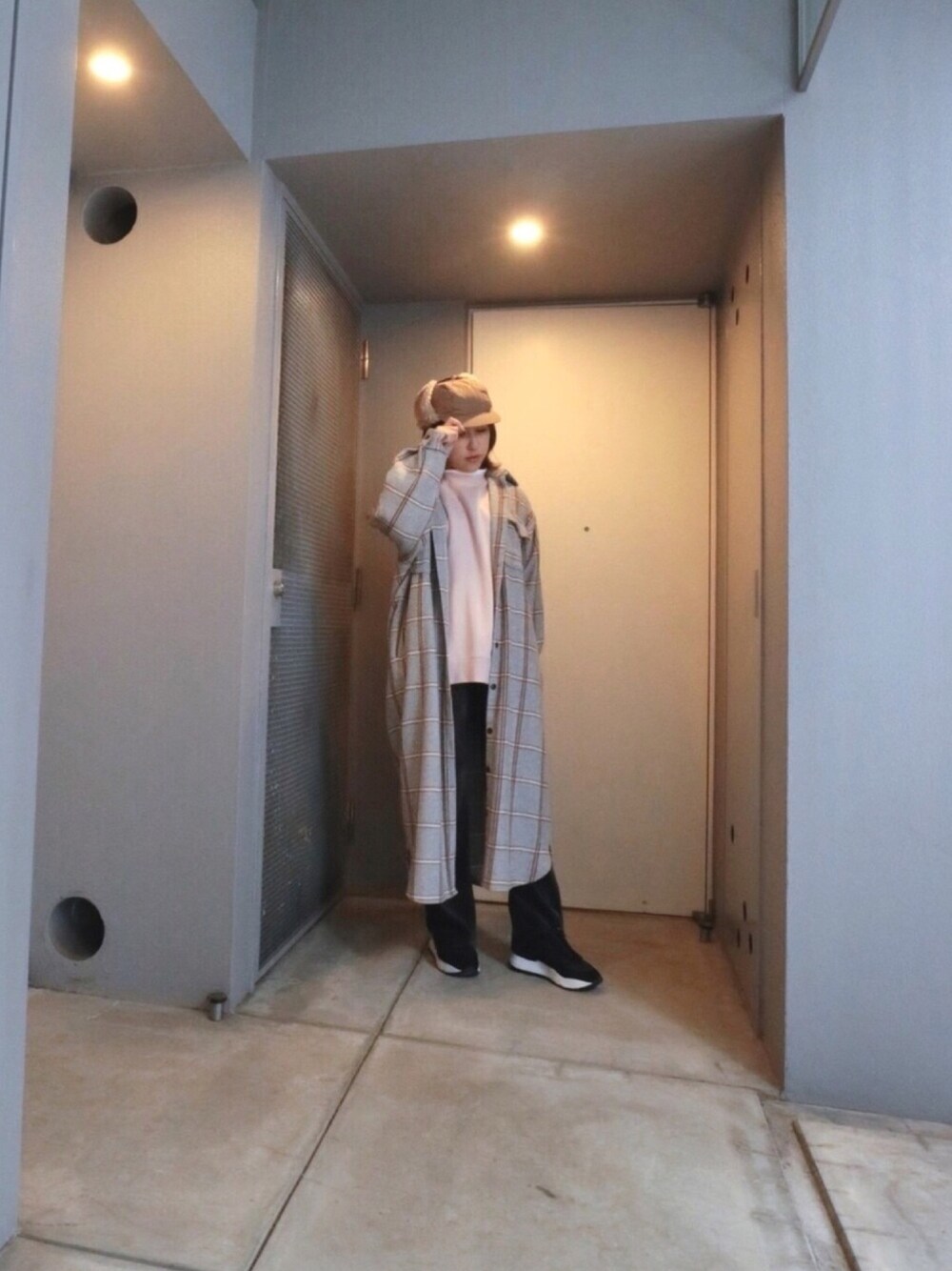 meeaのシャツワンピース「AUNT MARIE'S チェックCPOロングシャツアウター」を使ったコーディネート