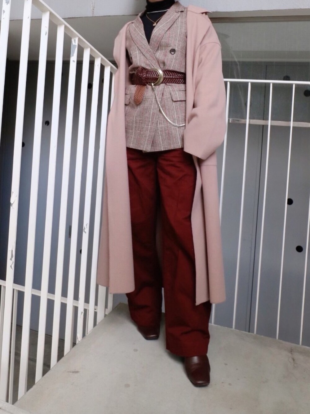 ブラウンをレイヤードレイヤード😊 ジャケットとコートの組み合わせ