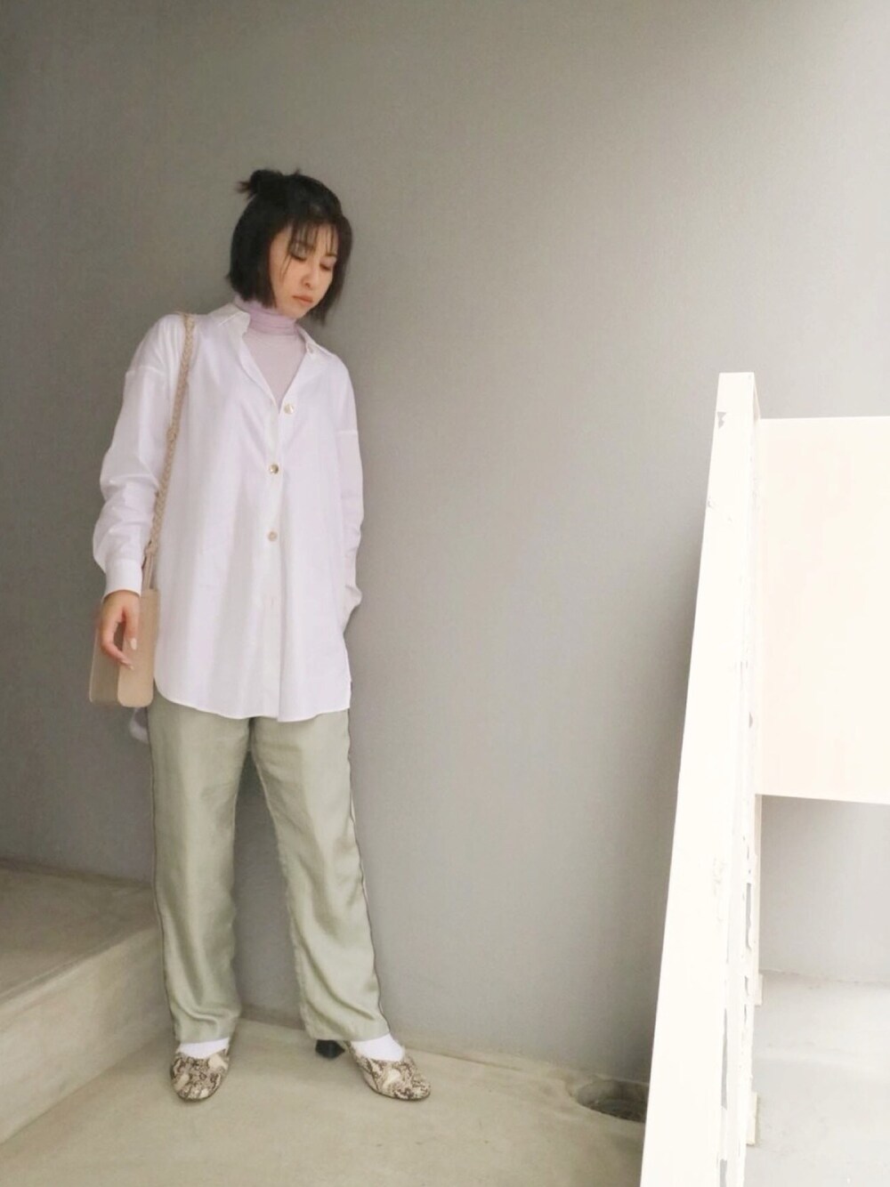 オーバーサイズの白シャツと はゆるくラフな感じで 着られます 中にシースルートップスを 合わせるのが最近好きなコーデ