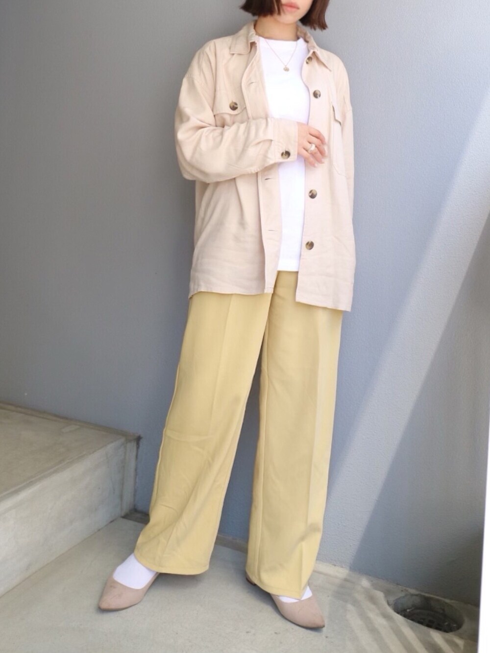 ベージュとイエローの 大好きな色合わせ💛 休みの日はラフに ゆるーい感じが ラクチンで好き☺️