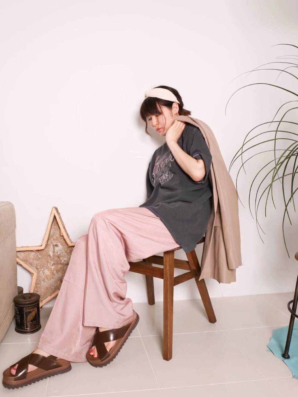 ちょっと肌寒い日は 軽アウター大活躍 雨が多い最近はヘアバンドも 愛用中