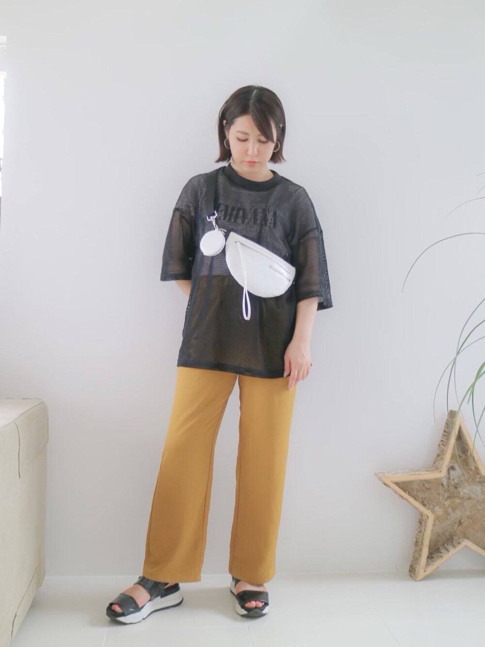 メッシュトップスが お気に入り。 スポサンと合わせて ラフスタイル