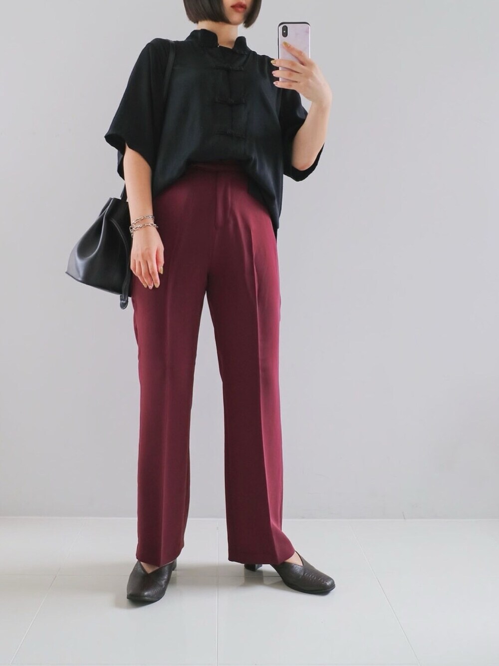 パンツがすごくかたちきれいで お気に入りです。 チャイナシャツは長袖バージョンも 欲しいなぁって思ってます。 もう寒いよね。