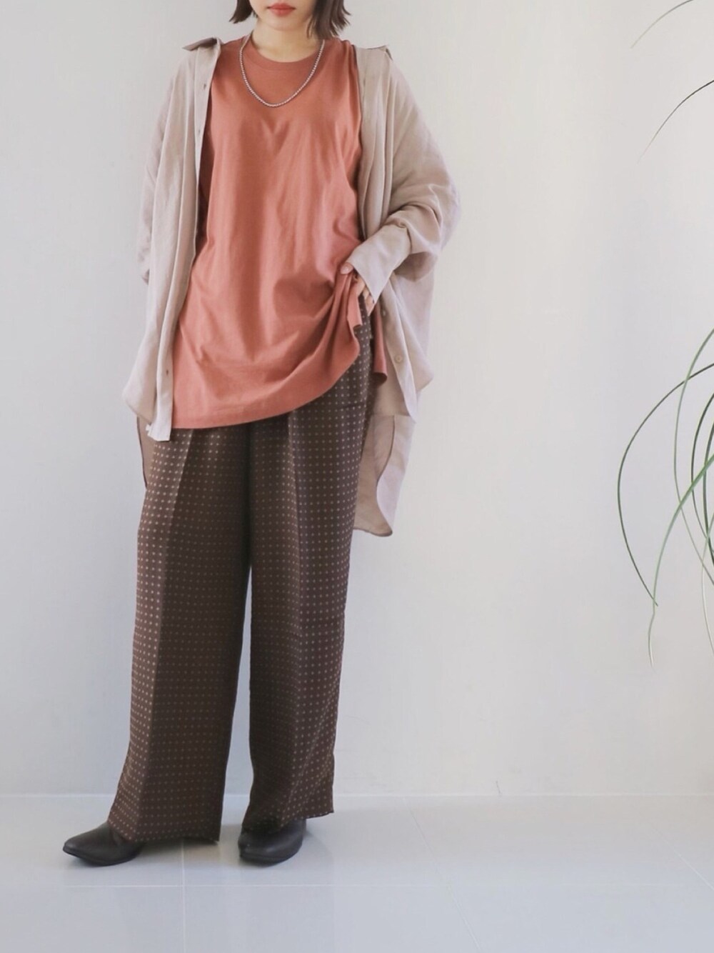 オーバーサイズのシャツと ワイドパンツで ゆるい感じのメンズライクコーデ。 パンツはジャガードで テロっとした生地で ブラウンのワントーンにアクセントで。 シルエットもきれいなので 活躍しそう。 ZARAのシャツもお気に入り サラッと羽織れてめっちゃ便利。