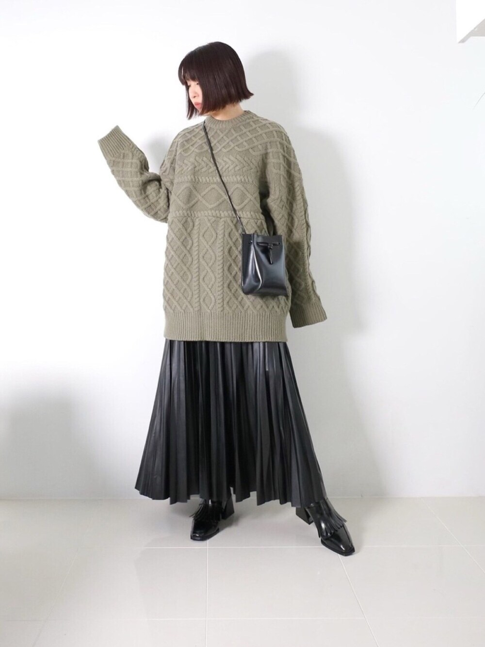 meeaのニット/セーター「ランダムケーブルオーバーニット」を使ったコーディネート