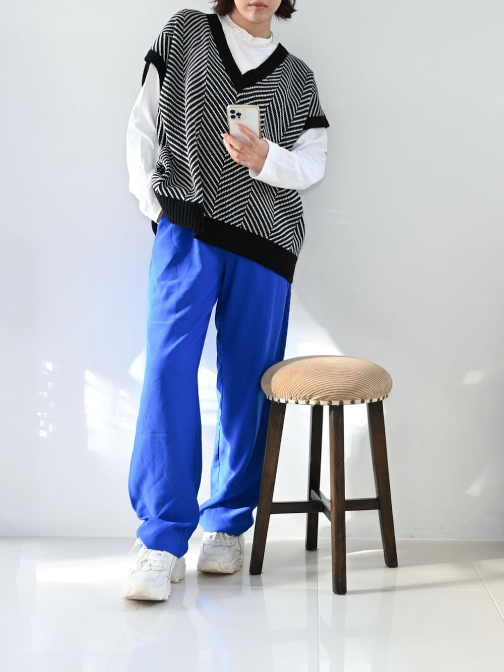 オーバーサイズのトップスと リラックス感あるパンツで 休日のラフコーデ