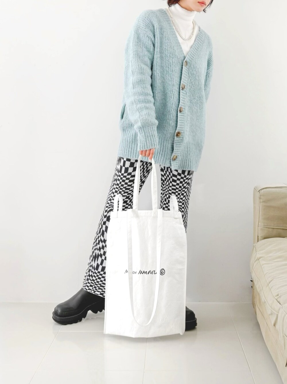いつかのコーデ チェッカー柄のパンツ めっちゃ楽チン