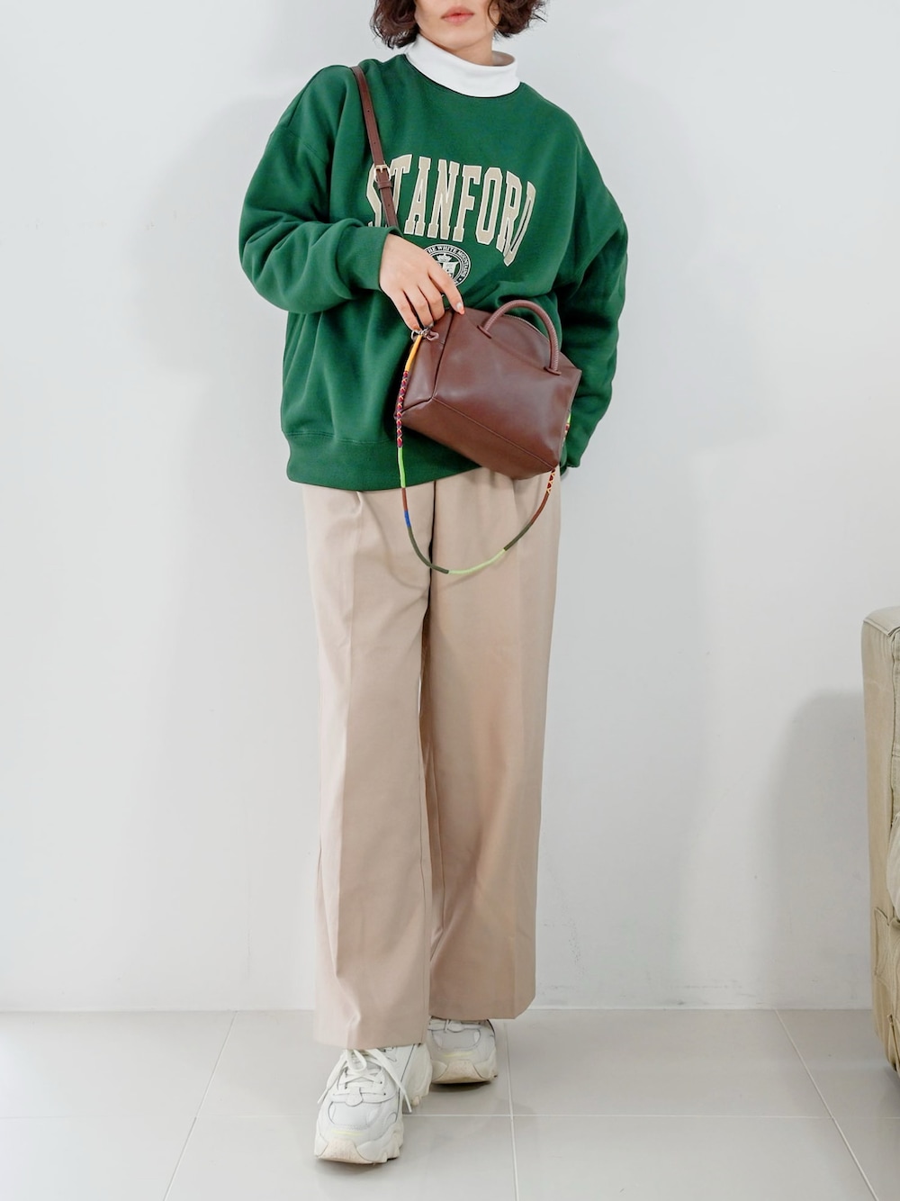 meeaのスウェット「カレッジロゴルーズスウェットプルオーバー」を使ったコーディネート