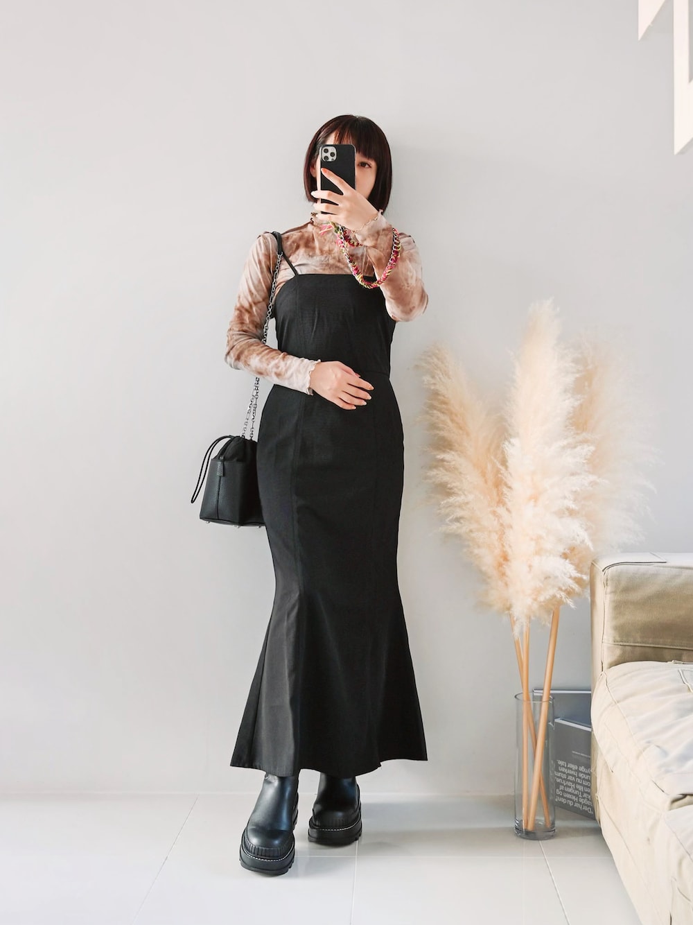 meeaのワンピース「【ロングセラー!】マーメイドラインロングキャミワンピース」を使ったコーディネート