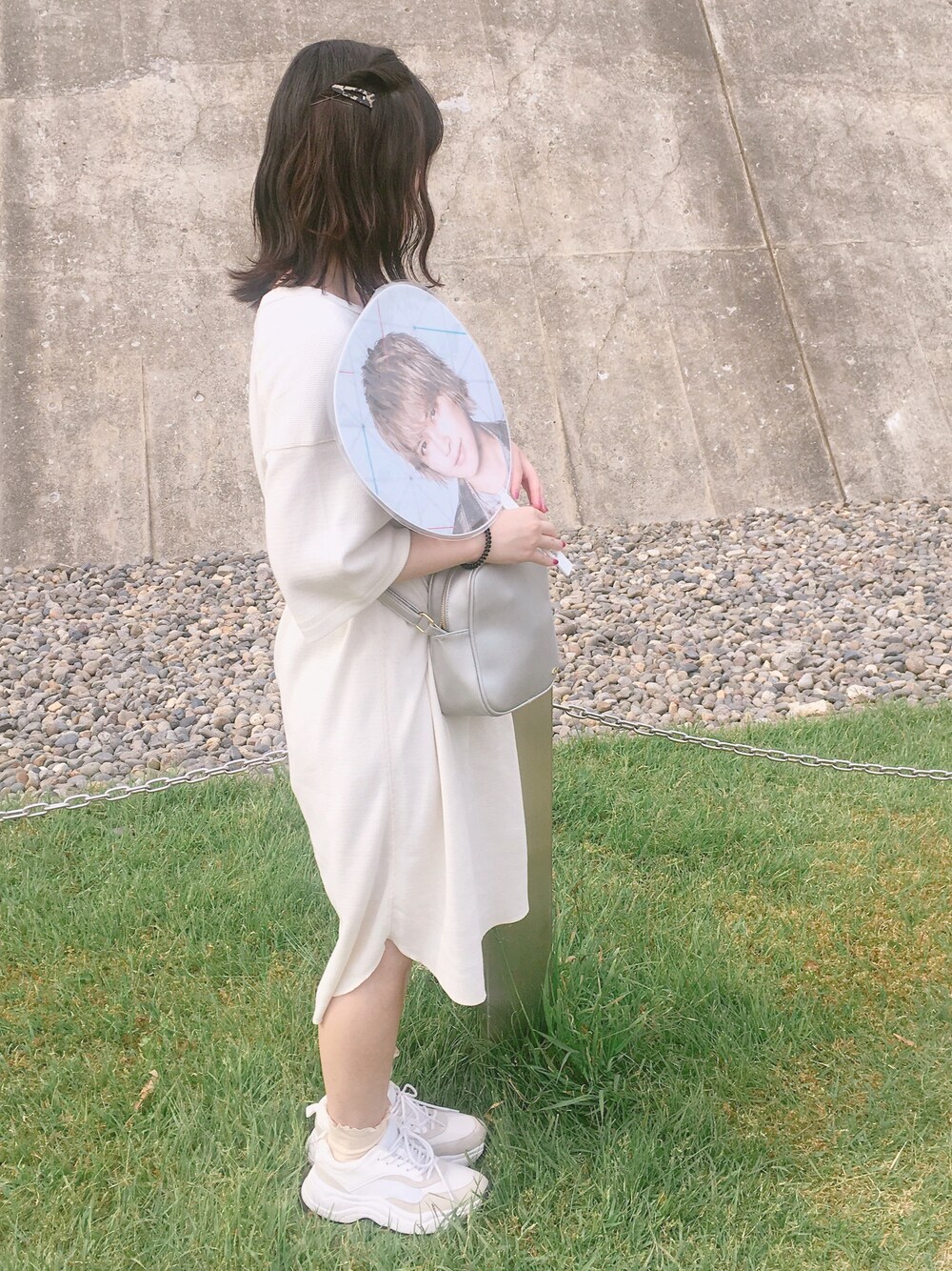 ホワイト系のワンピース/ドレス、ホワイト系のスニーカー、その他のバレッタ/ヘアクリップを着用したレディースの夏コーディネートの1枚目の写真
