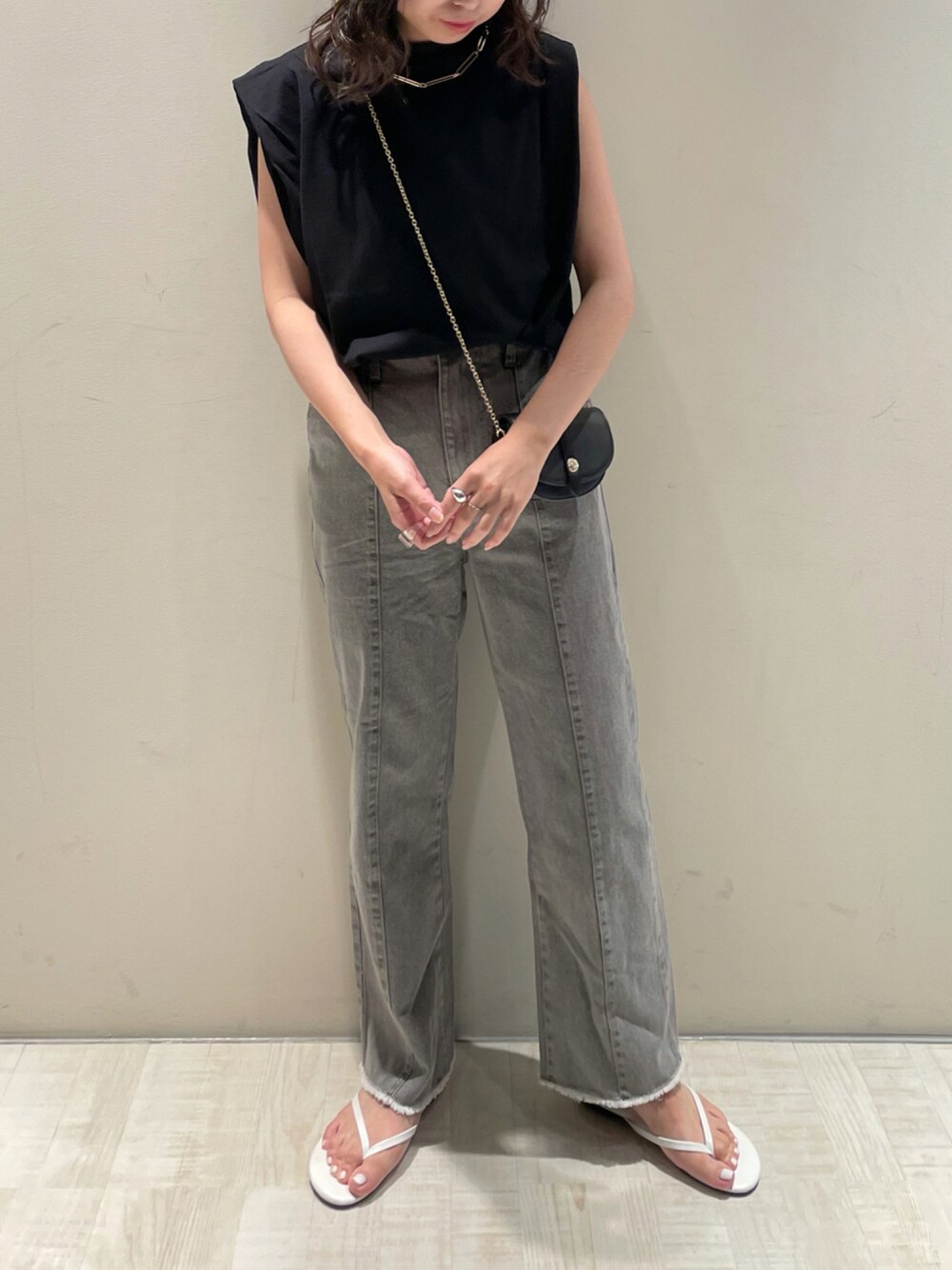 Instagram▶︎@lei.y.93 [デニムパンツ] とっても素材が柔らかくて履きやすい! 丈感が長すぎず、短かすぎず丁度いい🍃 [トングサンダル] 実はクッションついてて楽ちんです🌼 幅広甲高さんはLサイズの方がきれいに履いてもらえるかと、、😌