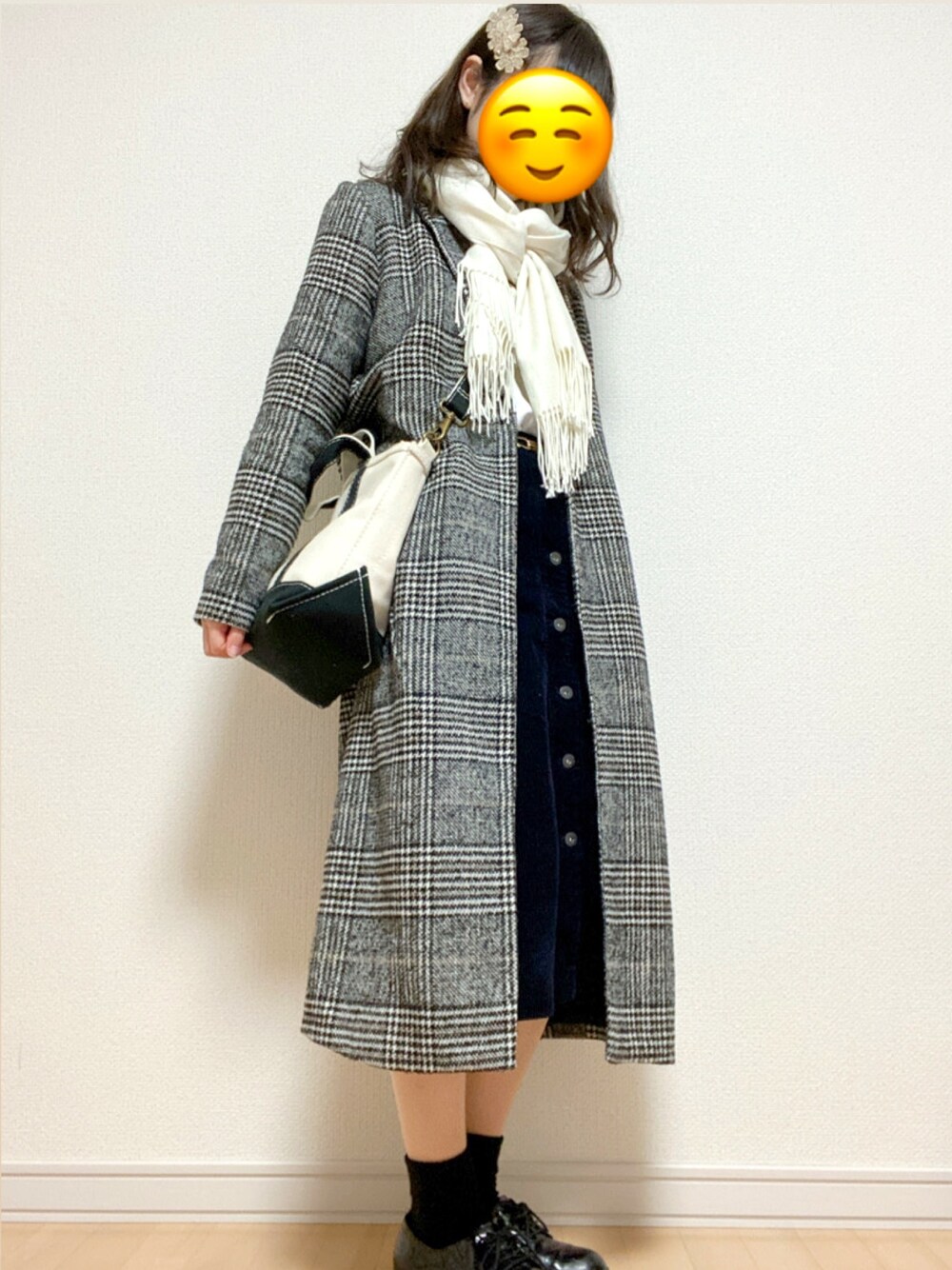 きらのスカート「コーデュロイフロントボタンスカート(ハイウエスト・丈標準69~72cm)」を使ったコーディネート