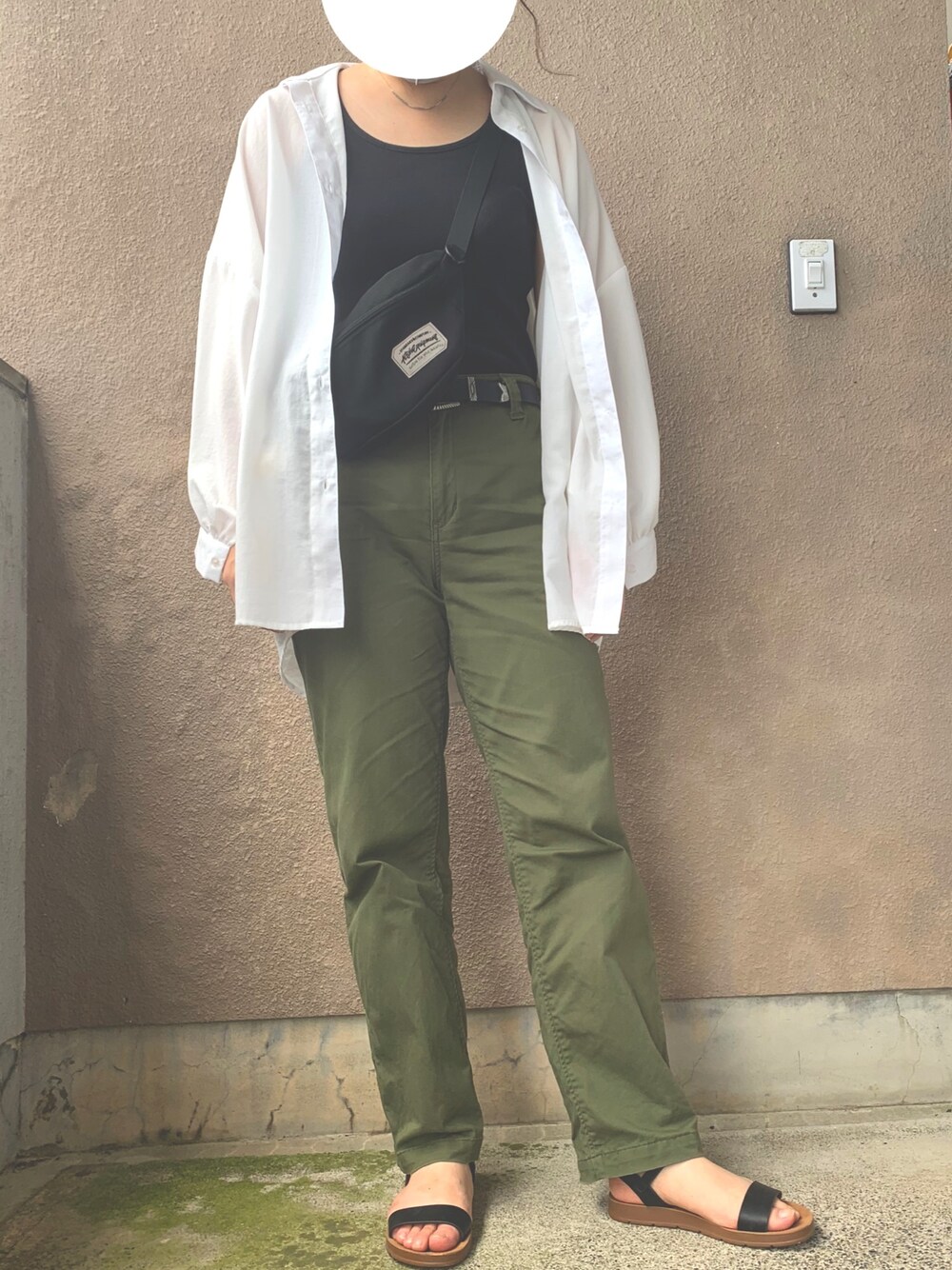 今日は ブラック、ホワイト、カーキでまとめた🙆♀️ アクセサリーはシルバーで。