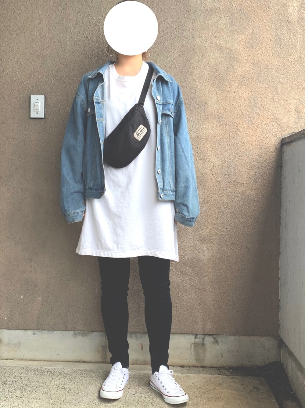 今日はスポーティーに😌 デニムジャケット着たけどまだ少し暑かった。 このダボっとした感じが良き🙆♀️