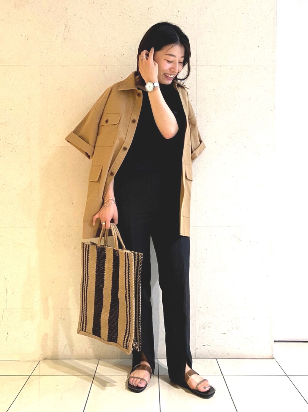 ご覧いただきありがとうございます! トーンを合わせたコーデ🖤🧡です! 軽さを出すためにサンダルはクリアで✨