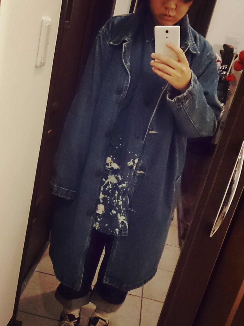 コート*古着 トップス*vintage パンツ*もらいもの シューズ*古着 全身デニムコーデ○