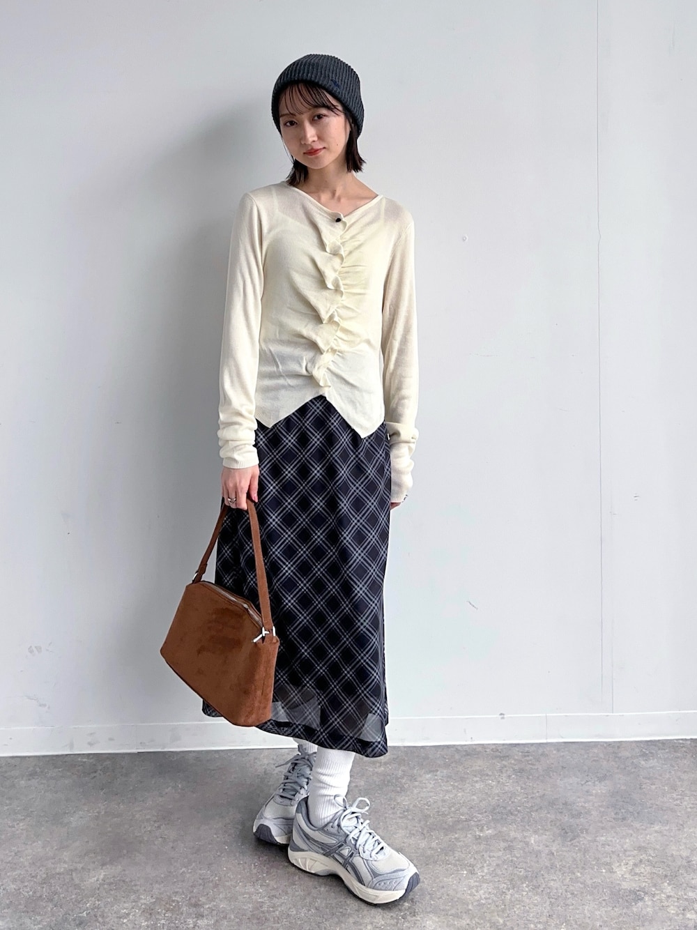 ギャザーフリル入りなのが春っぽくて可愛い💓