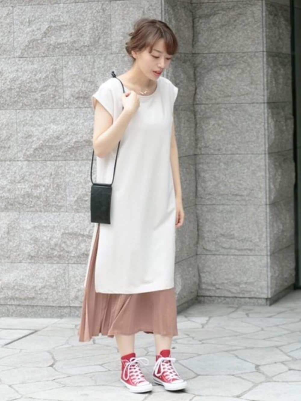 ympsanのワンピース「インナープリーツ付フレンチカットワンピース」を使ったコーディネート