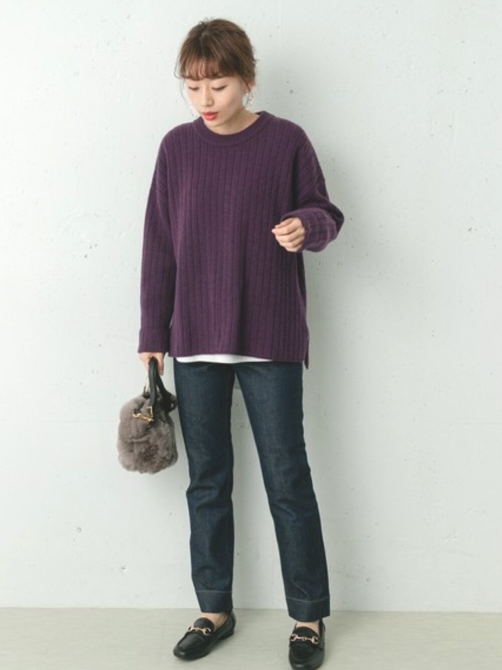 ympsanのニット/セーター「ワイドリブルーズニットプルオーバー」を使ったコーディネート
