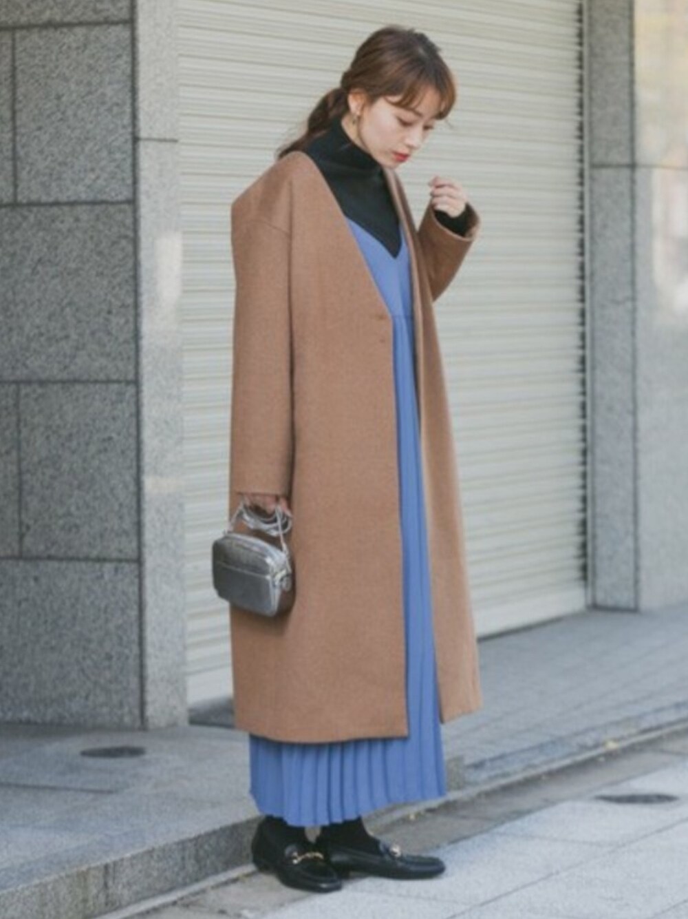 ympsanのワンピース「タートルニット×プリーツワンピースセット」を使ったコーディネート