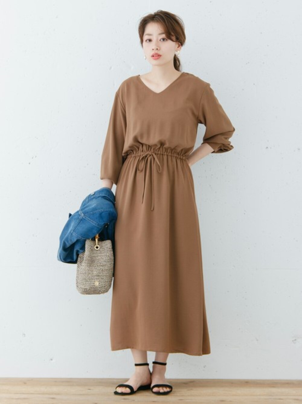 ympsanのワンピース「バックシャーリングワンピース」を使ったコーディネート