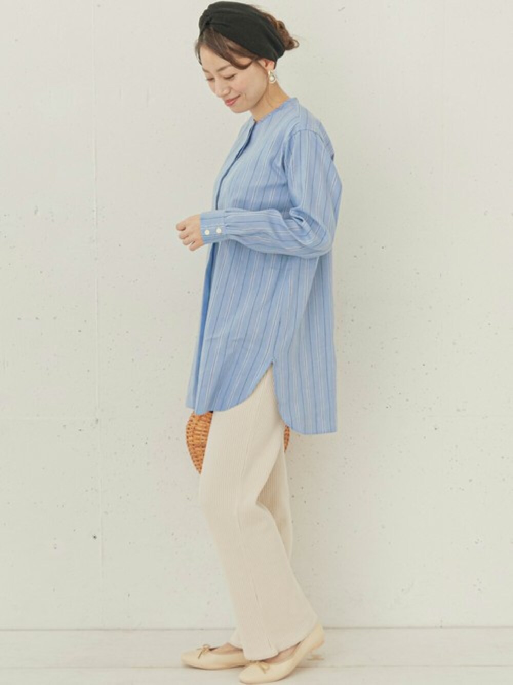ympsanのシャツ/ブラウス「リネンノーカラーチュニックシャツ」を使ったコーディネート