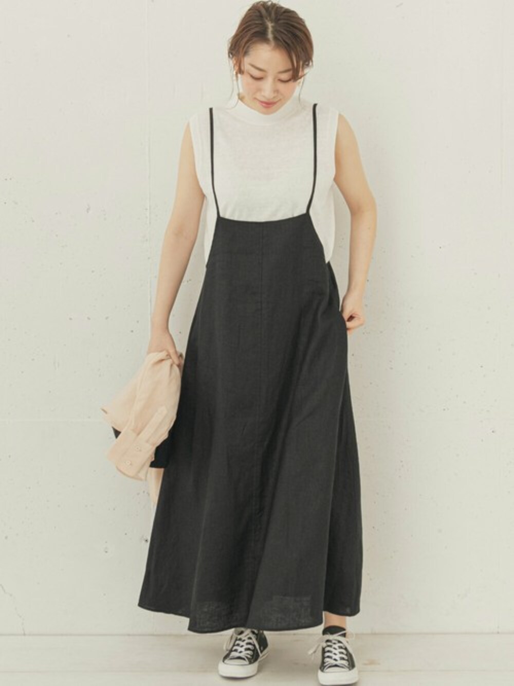 ympsanのスカート「リネンジャンパースカート」を使ったコーディネート