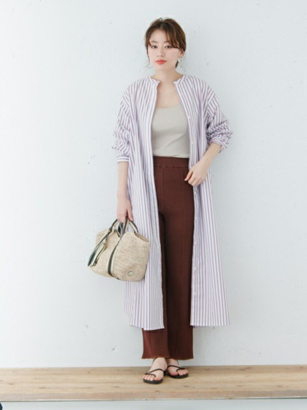 ympsanのワンピース「ロングストライプシャツワンピース」を使ったコーディネート