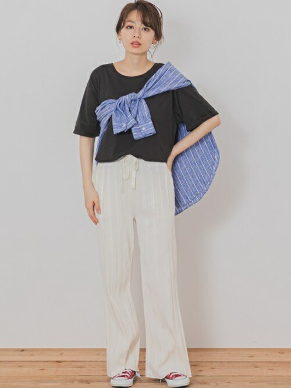 ympsanのその他パンツ「ランダムリブワイドパンツ」を使ったコーディネート