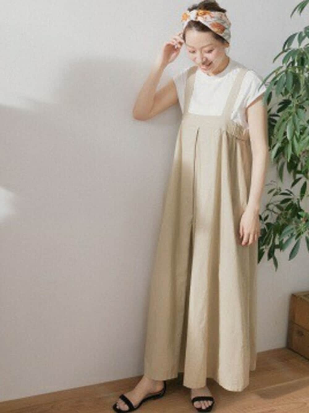 ympsanのサロペット/オーバーオール「リネンコットンタックワイドサロペット」を使ったコーディネート