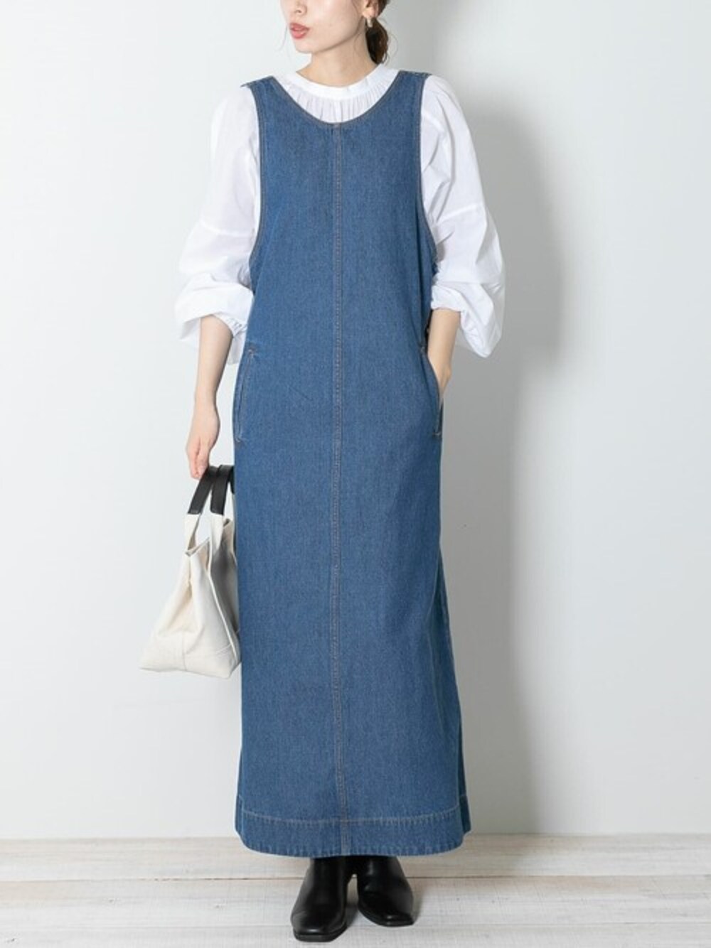 ympsanのワンピース「『WEB限定』デニムロングワンピース」を使ったコーディネート